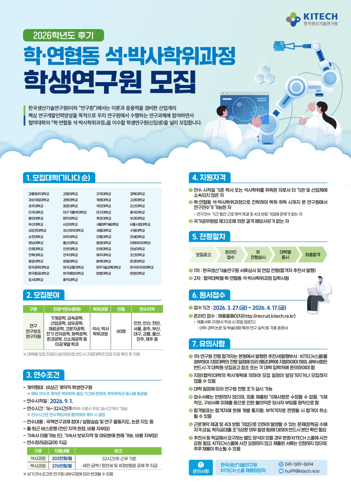 [기타] [한국생산기술연구원] 2026학년도 후기 학·연협동 석·박사학위과정 학생연구원 모집