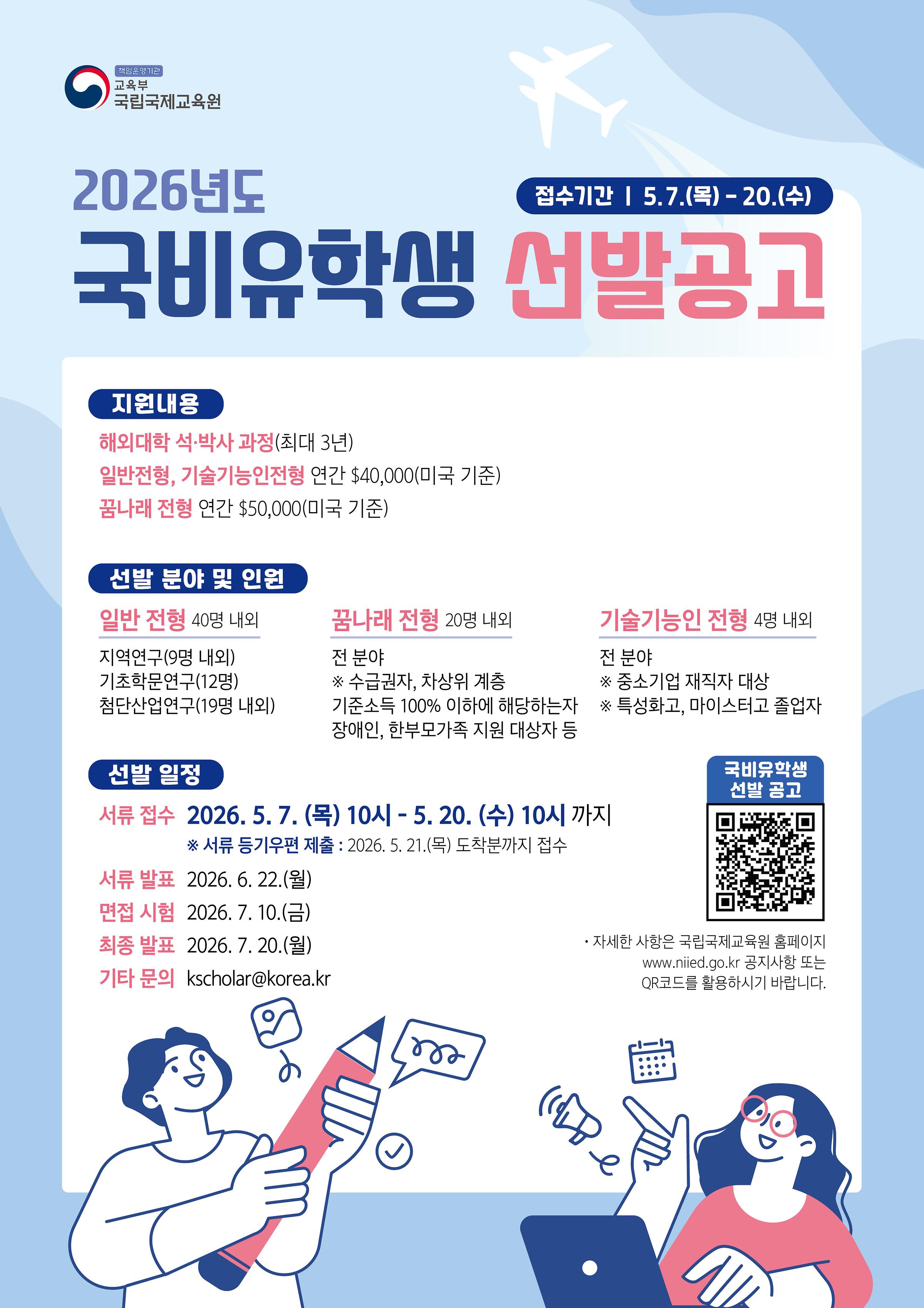 🔗[국립국제교육원] 2026년 국비유학생·국비연수생 선발 공고 안내