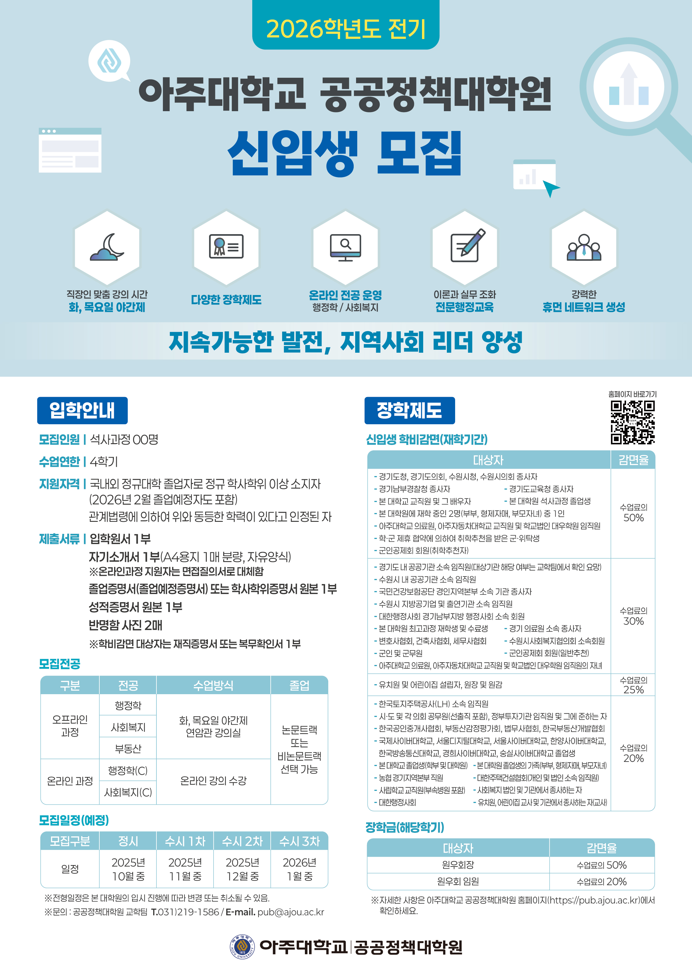 [공공정책대학원] 2026학년도 전기 정시 석사과정 신입생 모집 안내