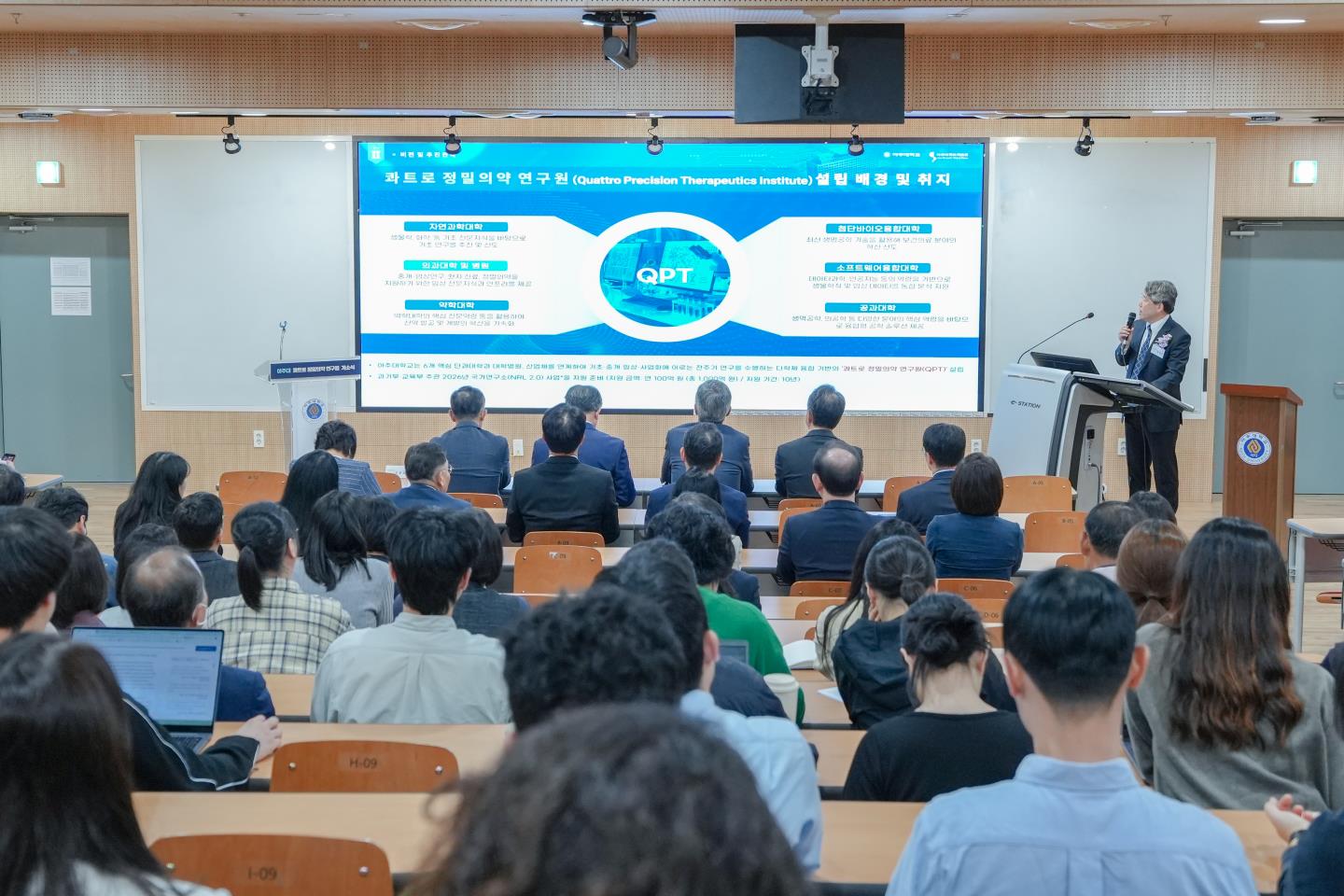 아주대학교가 ‘콰트로 정밀의약 연구원’을 개소하고 의과대학과 약학대학∙첨단바이오융합대학 등의 협업을 통해 첨단 바이오 분야 연구∙교육 및 산학협력에 나선다.