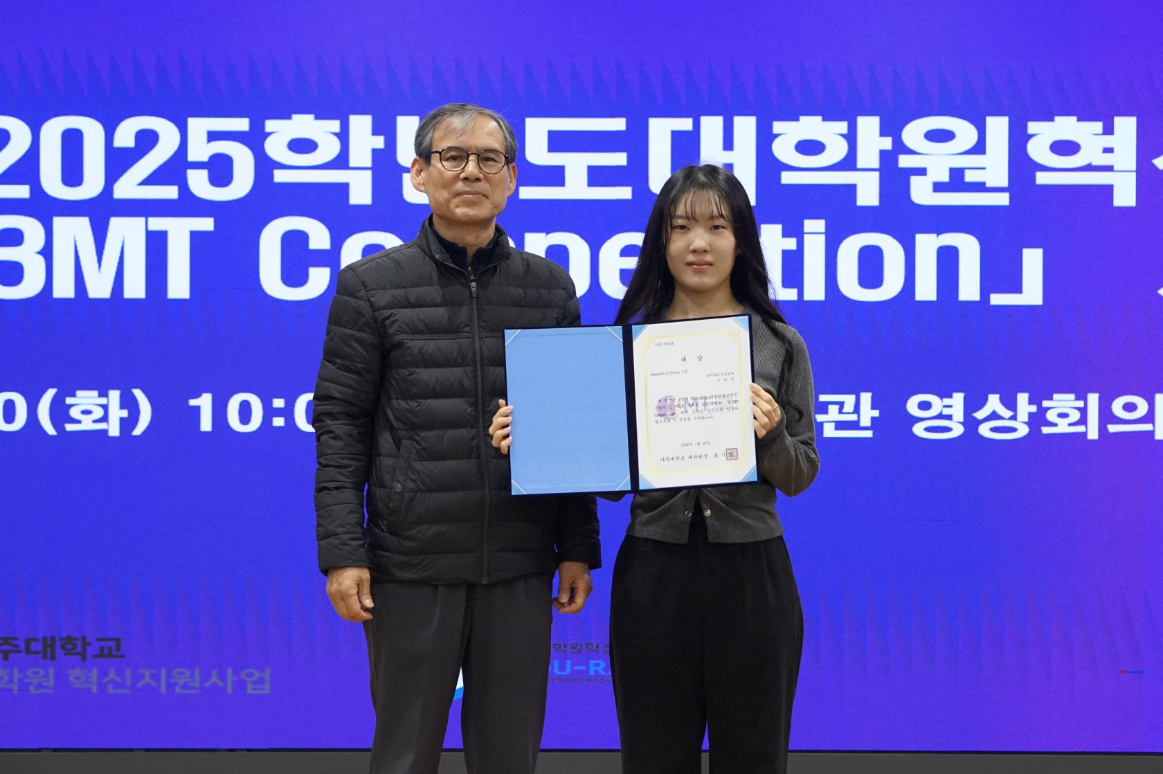 연구-진로 탐색 부문 대상 수상자 김채린(분자과학기술학과) 학생과 류기열 대학원장