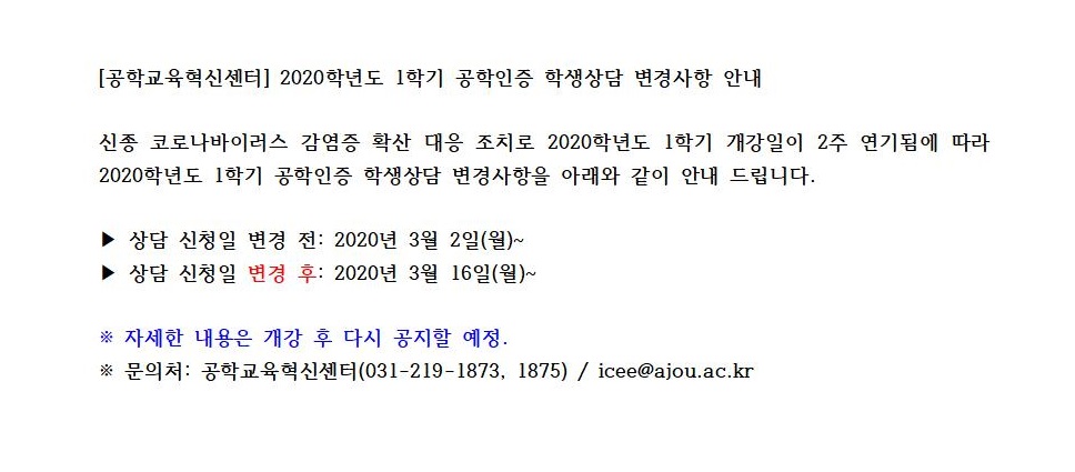| 9796 | 학사일정 | 공학교육혁신센터 | 2020-02-13 | ||