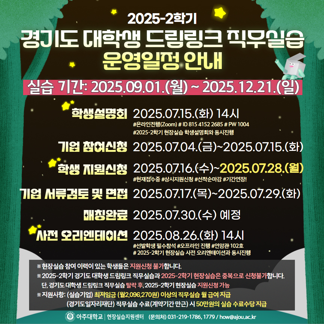 [🙌기간연장] 2025-2학기 경기도 대학생 드림링크 직무실습 운영 일정안내(★학생 지원신청 2025.07.16.(수)~)