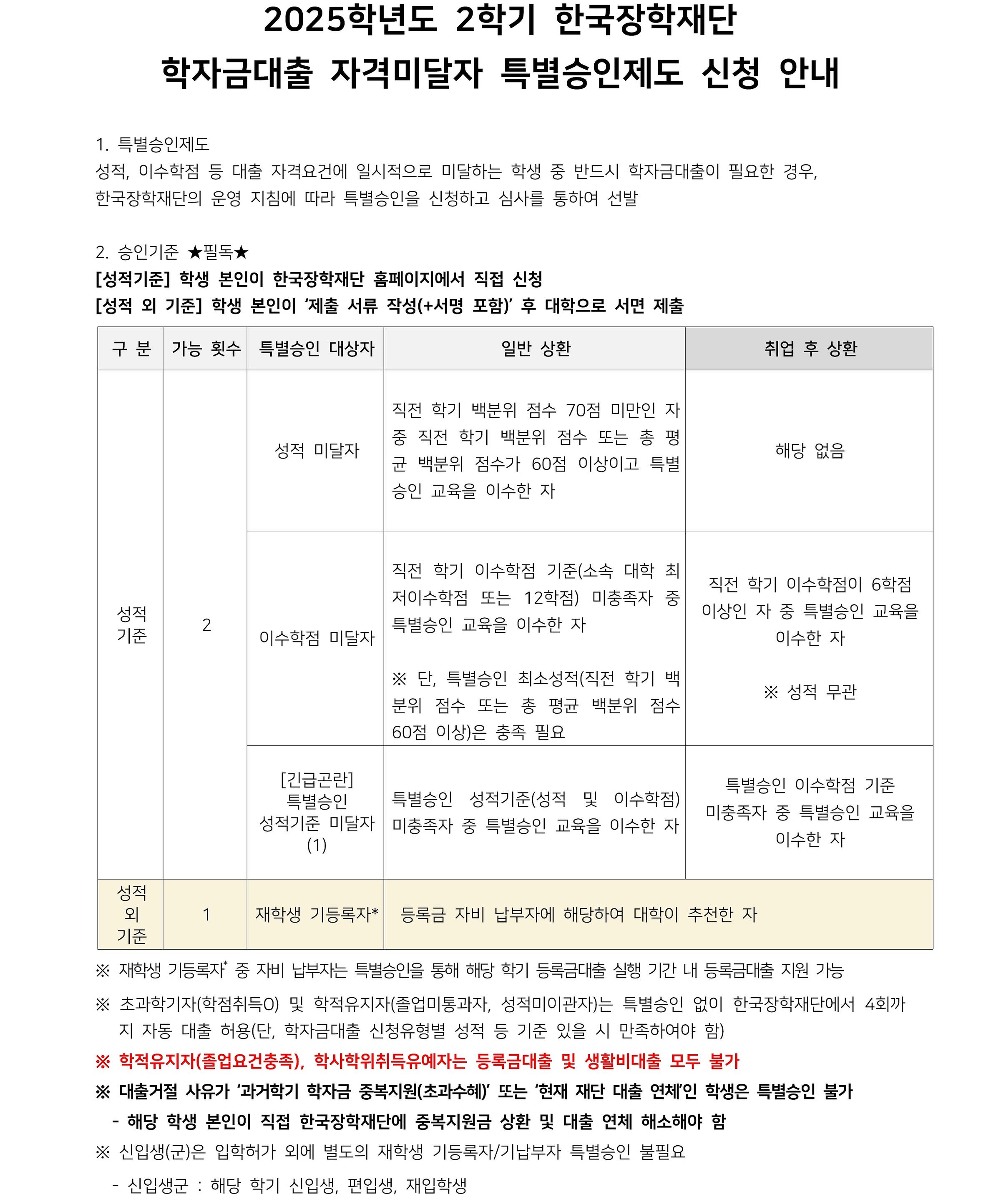 [장학] [학자금대출] 2025-2 한국장학재단 학자금대출 특별승인제도 신청 안내 (~10.23. 16시까지)