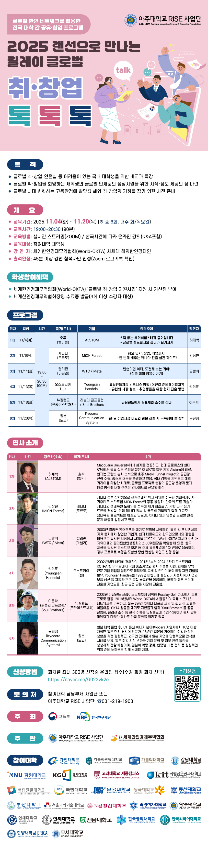 [비교과] [재공지] [RISE] 2025 랜선으로 만나는 릴레이 글로벌 취·창업 톡톡톡(talk) 신청 안내