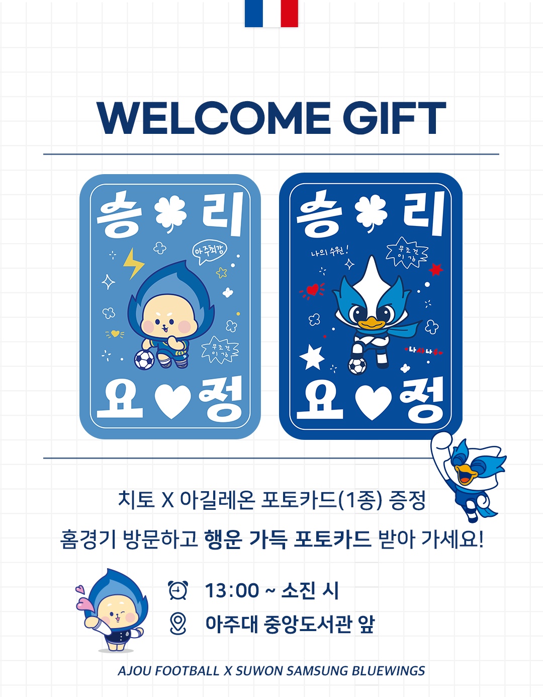 아주대학교 축구부와 수원삼성블루윙즈가 함께하는 특별한 이벤트부터 다양한 굿즈와 이기제 선수의 친필사인 축구화를 만날 수 있는 경품 추첨 이벤트까지🤫