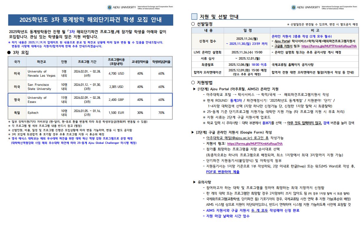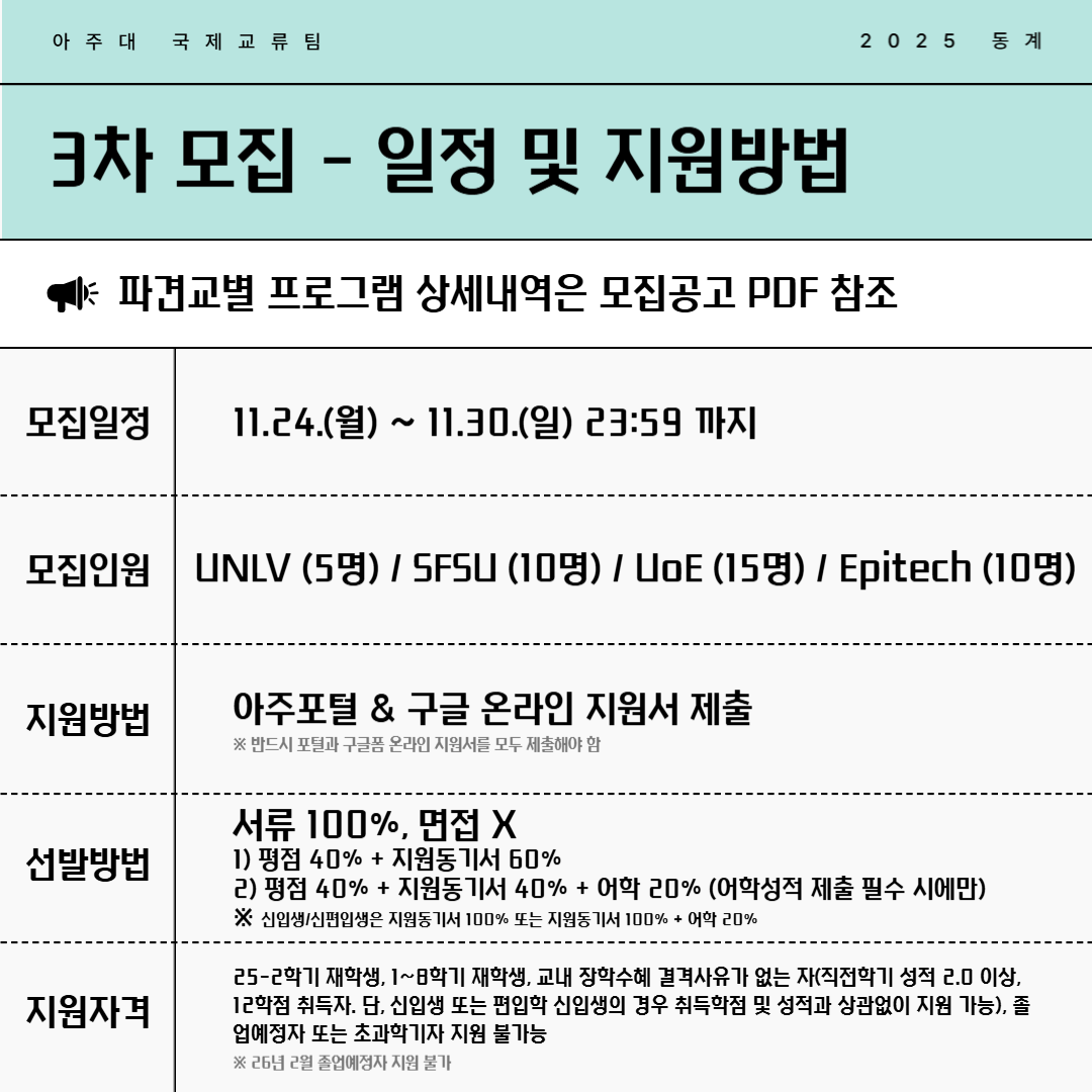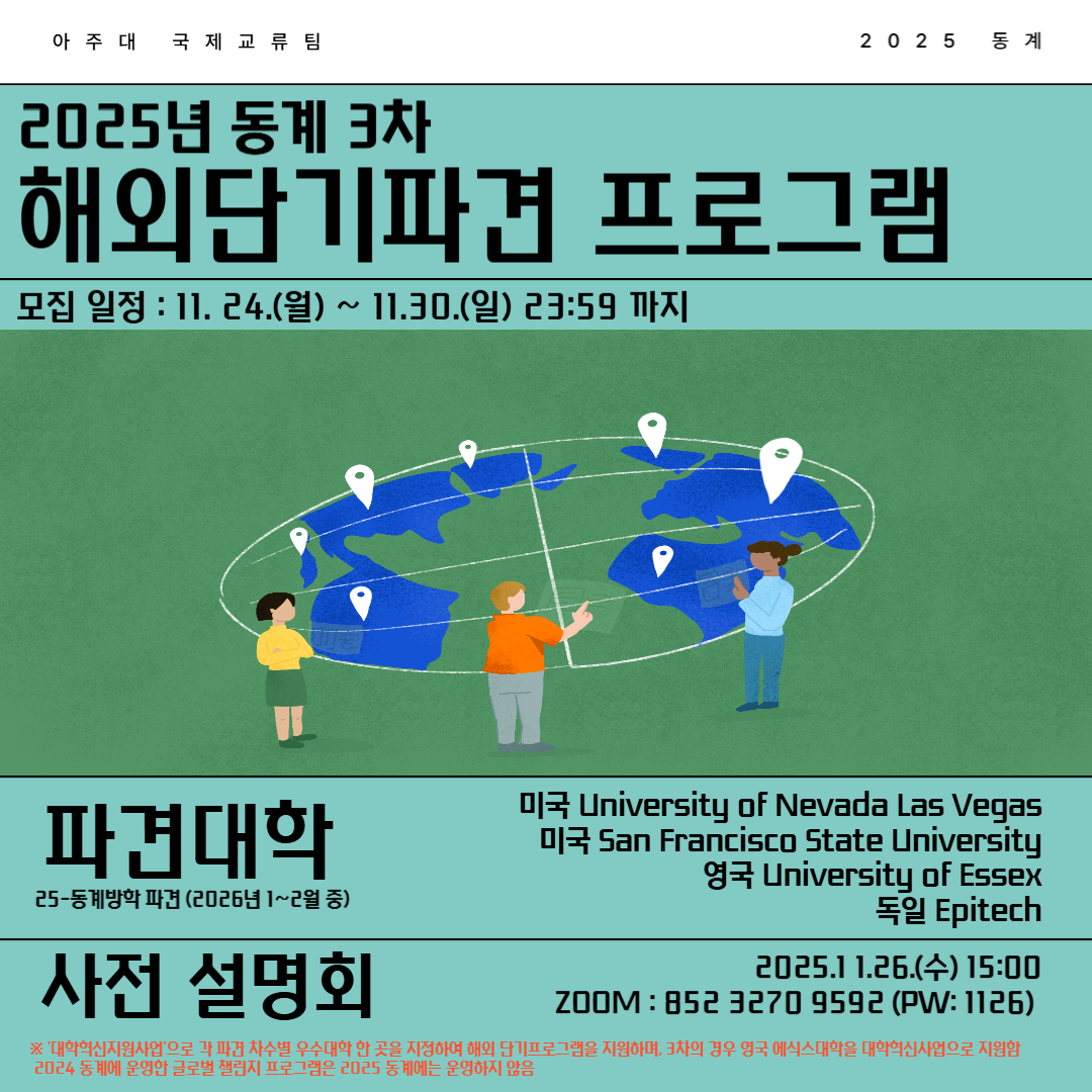 [행사] [국제교류팀] [동계 3차] 2025 해외단기파견 프로그램 참가자 모집 (11/24~11/30)
