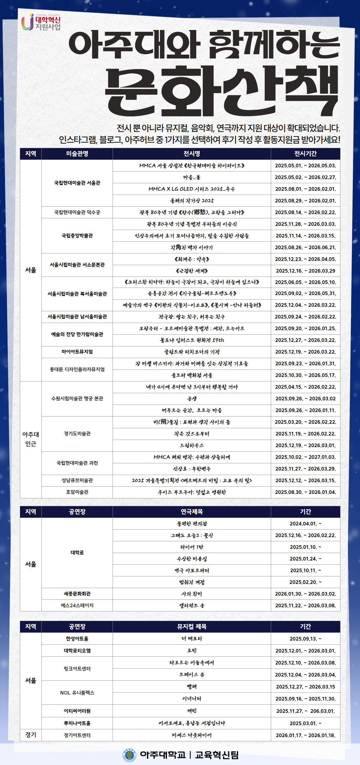 ์ ์ ๋ฐ ๊ณต์ฐ์ ๊ด๋ํ์ ํ ํ๊ธฐ๋ฅผ ์์ฑํ์ฌ ์ฃผ์๋ฉด ์ฐ์ ํ๊ธฐ์ ํํด ํ๋์ง์๊ธ(2๋ง์)์ ๋๋ฆฝ๋๋ค.