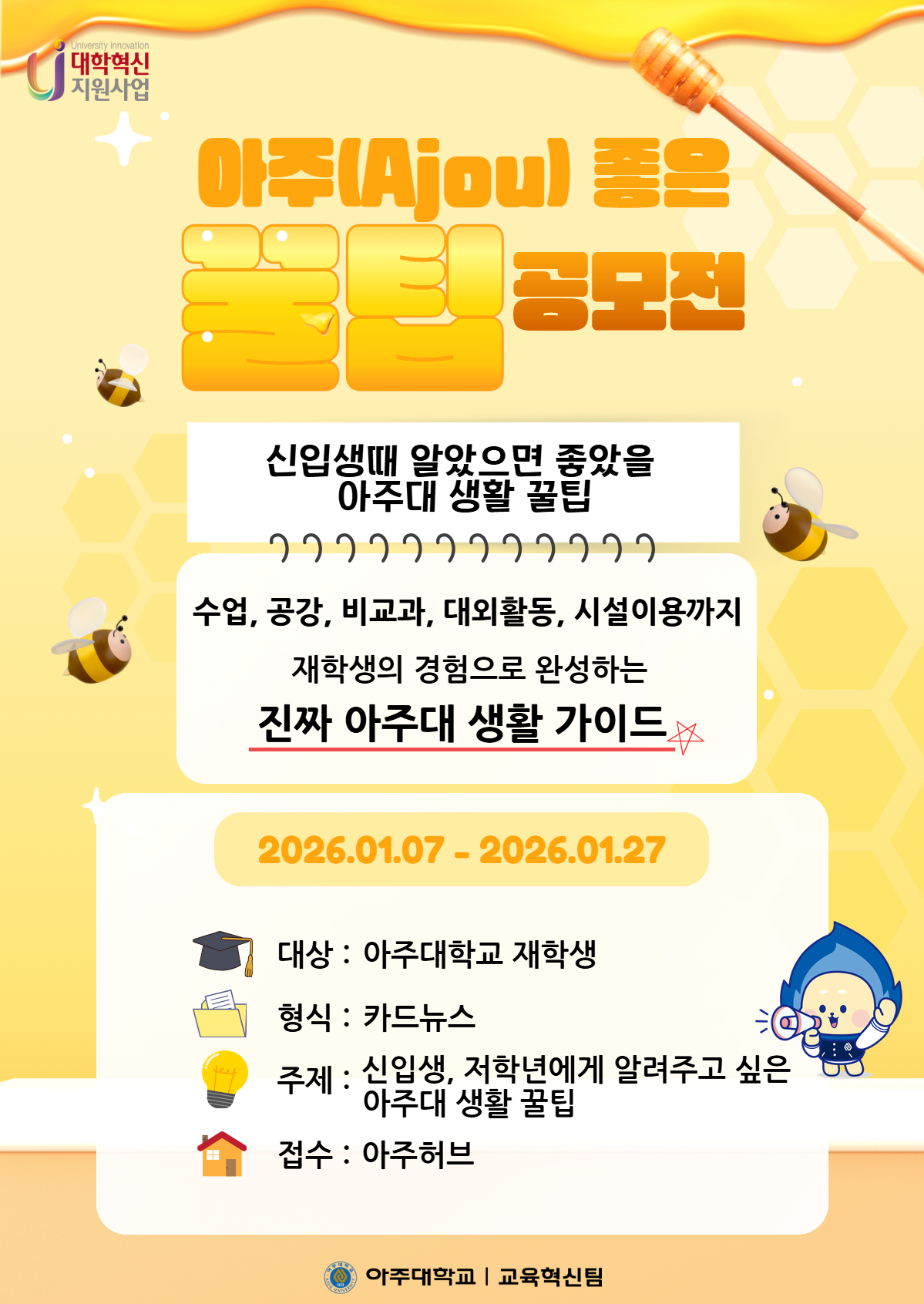 [๋น„๊ต๊ณผ] [์žฌ๊ณต์ง€]๐Ÿ€์•„์ฃผ(Ajou) ์ข‹์€ ๊ฟ€ํŒ ๊ณต๋ชจ์ „๐Ÿ€