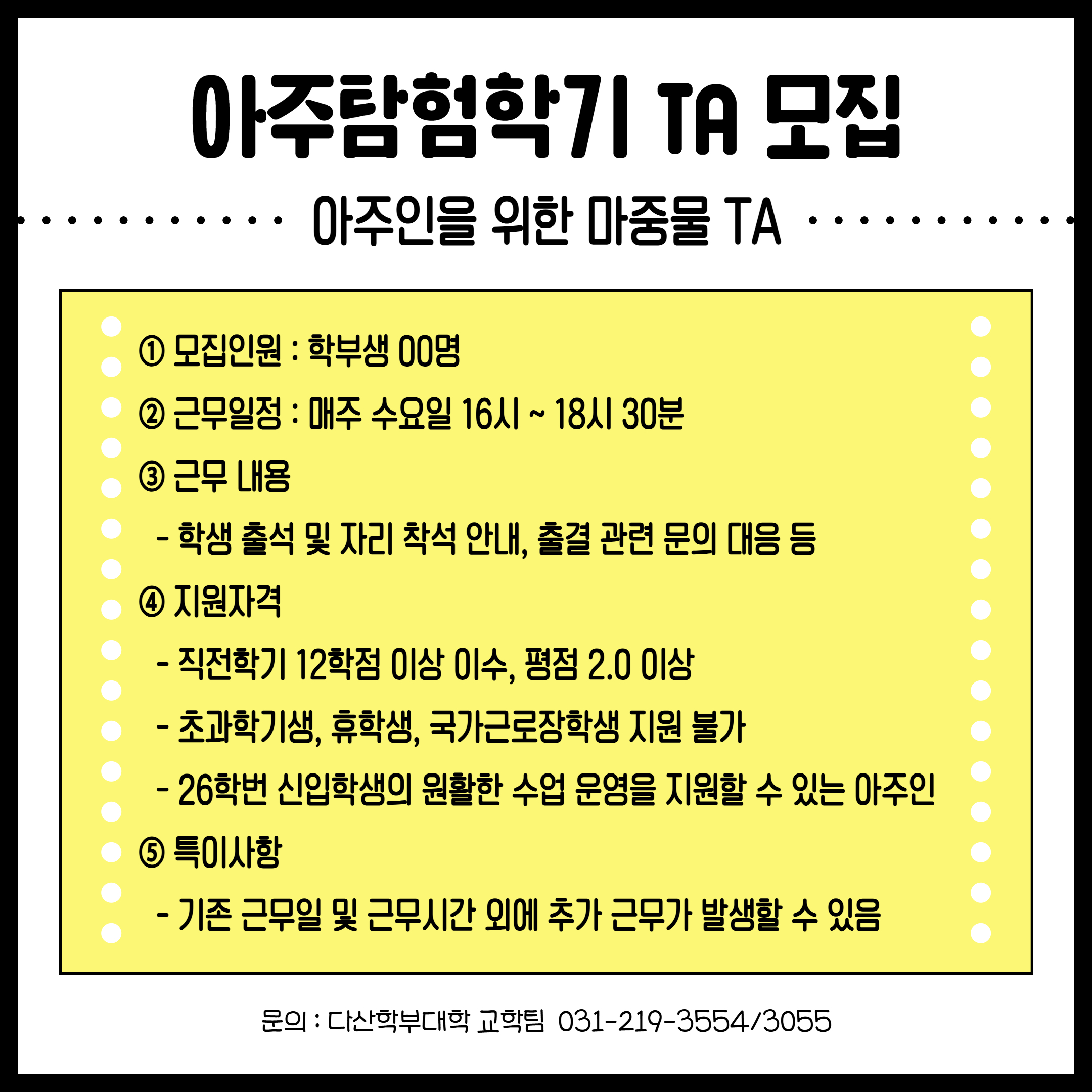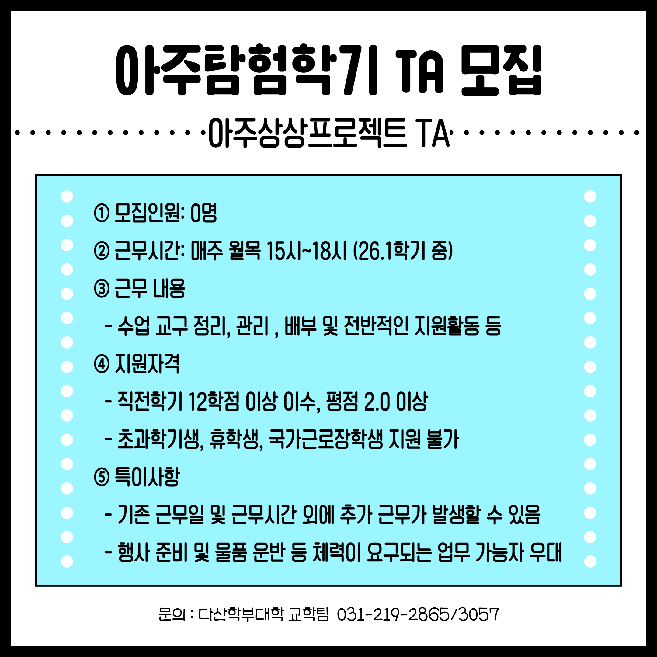 [장학] [다산학부대학] 아주탐험학기 TA 모집 (~ 2/12까지)
