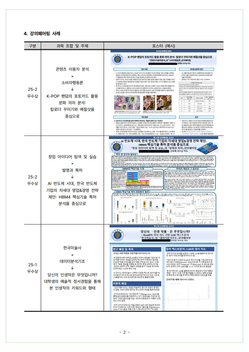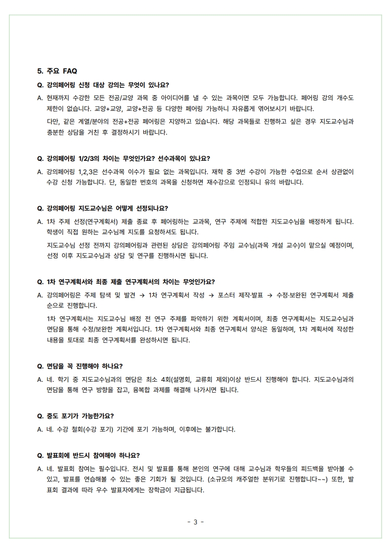 * ๊ฐ•์˜ํŽ˜์–ด๋ง ๋ฐœํ‘œํšŒ ์šฐ์ˆ˜ ์ˆ˜์ƒ์ž์—๊ฒ ์žฅํ•™๊ธˆ ์ง€๊ธ‰๋ฉ๋‹ˆ๋‹ค. (์žฅํ•™๊ธˆ ์ง€๊ธ‰ ๊ทœ์น™์— ์˜๊ฑฐ ์ˆ˜ํ˜œ ๊ฐ€๋Šฅํ•œ ํ•™์ƒ์„ ๋Œ€์ƒ์œผ๋กœ ํ•จ)