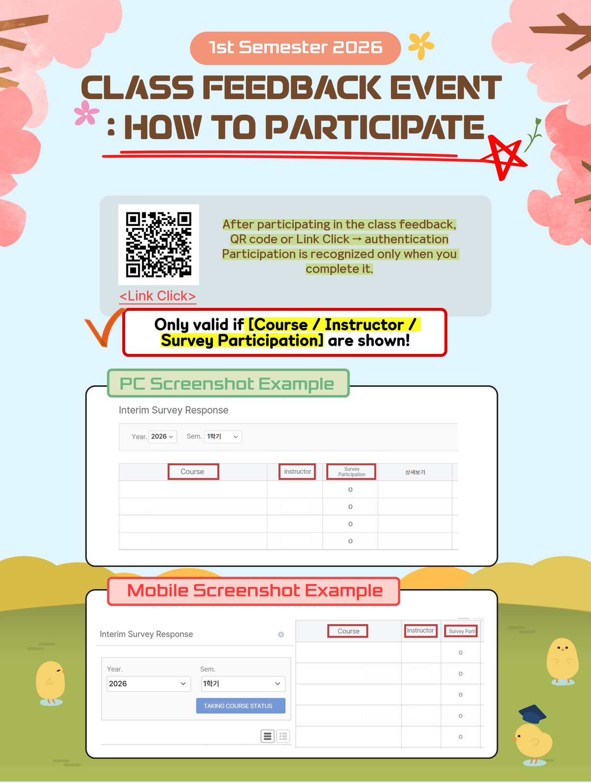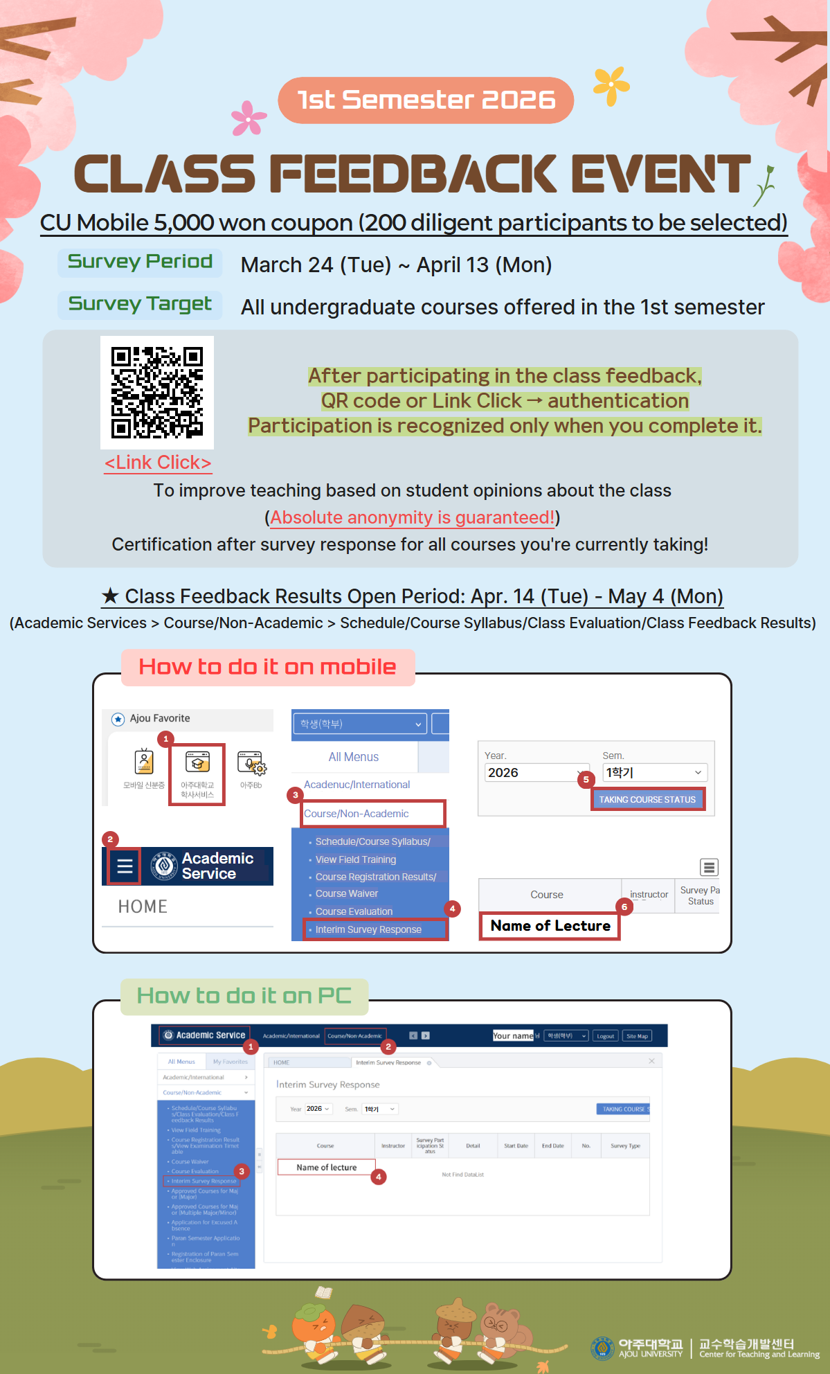 [학사] [Undergraduate] 2026-1st semester class feedback participation guide <~ 4/13(Mon)> 수업피드백