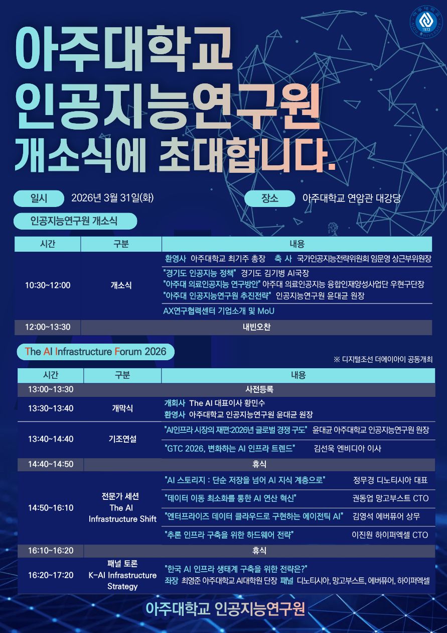[행사] 아주대학교 인공지능연구원 개소식 & The AI Infrastructure Forum 2026 개최 안내