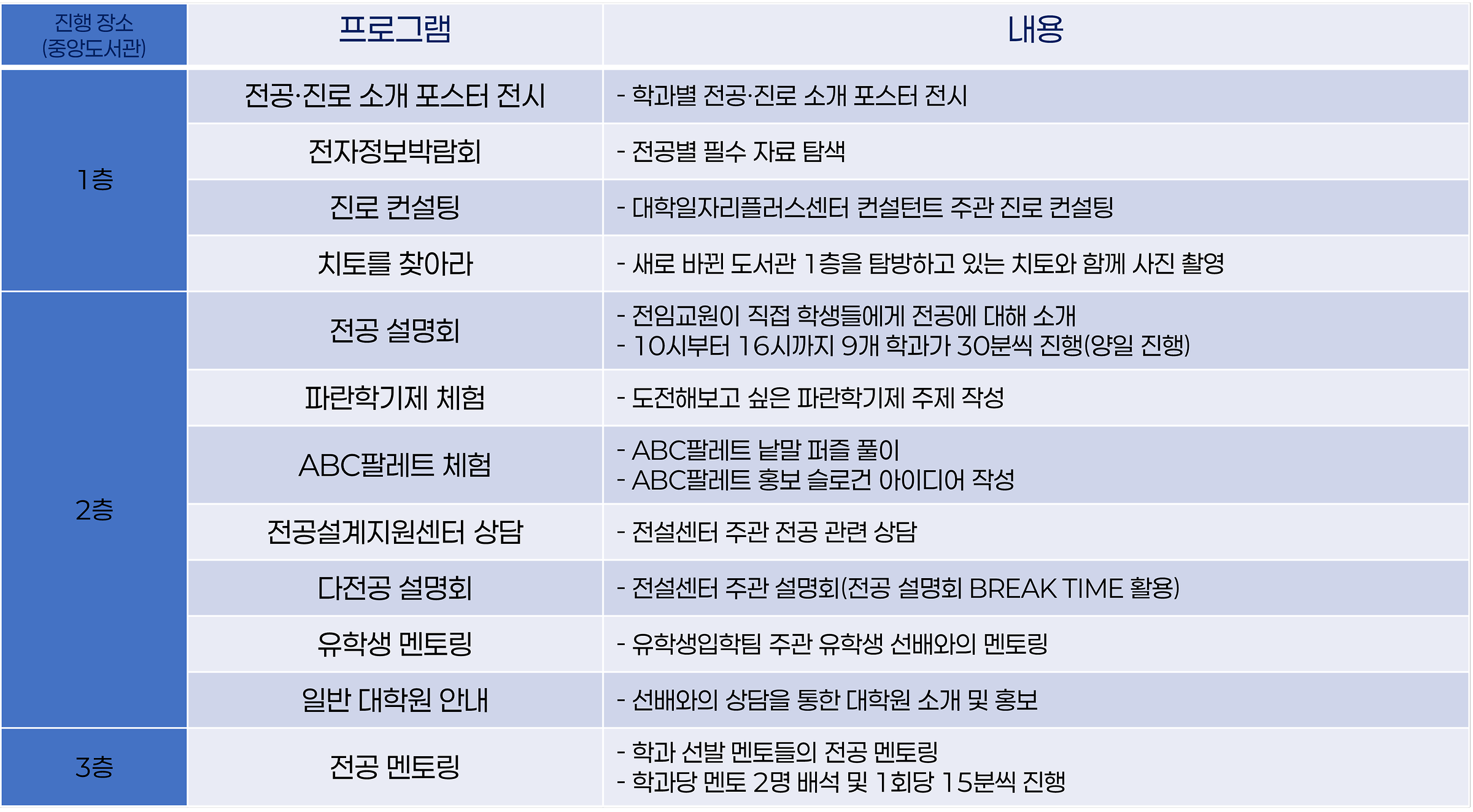 - 주관: (공동) 교무혁신처, 중앙도서관, 대학일자리플러스센터