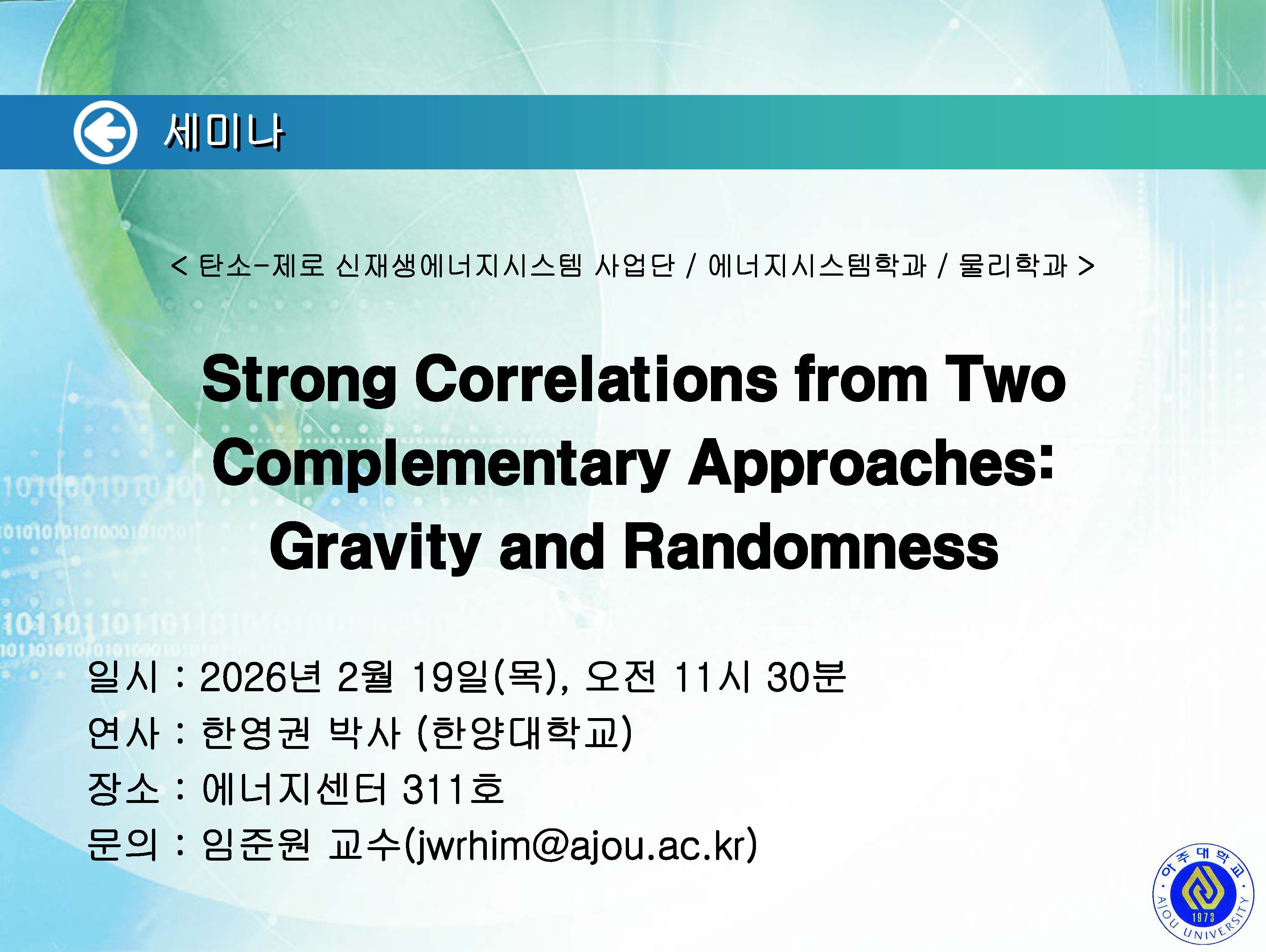 | 1885 | 세미나/포럼 | 교내 | 박미연 | 2026-02-19 | ||
