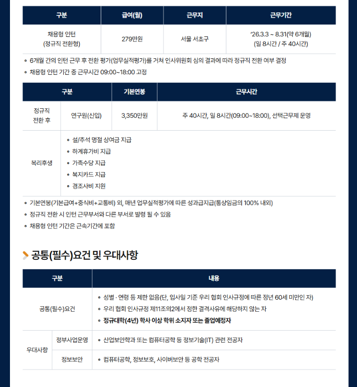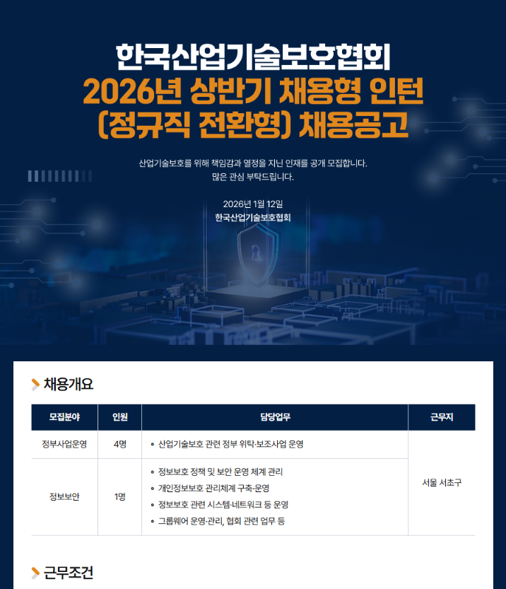2026년 상반기 채용형 인턴(정규직전환형)채용공고 한국산업기술보호협회