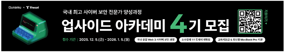 [공지] [두나무/티오리] UPSide Academy 4기(Web3 보안 최고 전문가 양성과정) 모집(~1/5(월))