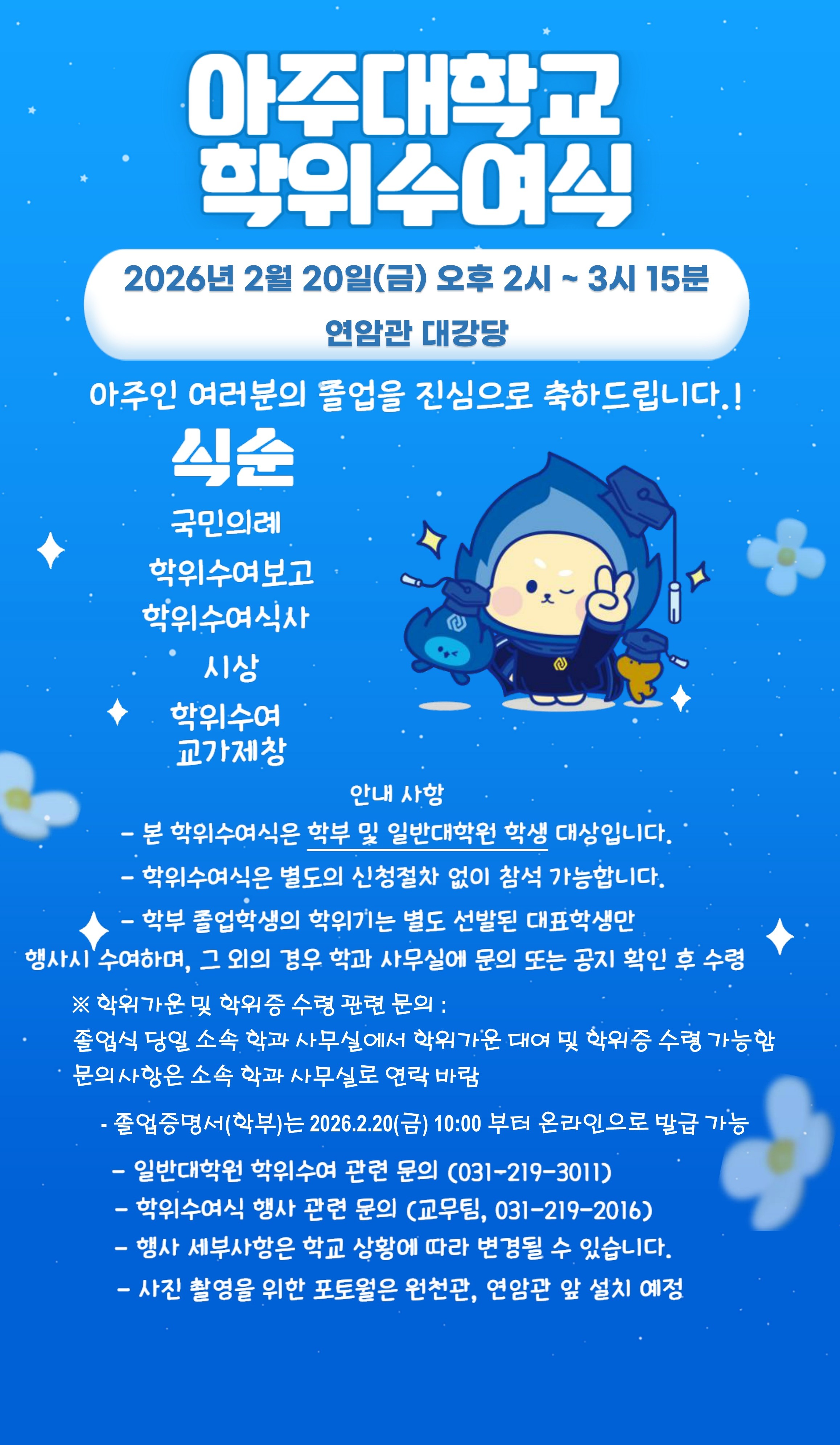 (학부, 일반대학원 대상) 학위수여식 안내 (2.20.(금) 14시, 연암관 대강당)